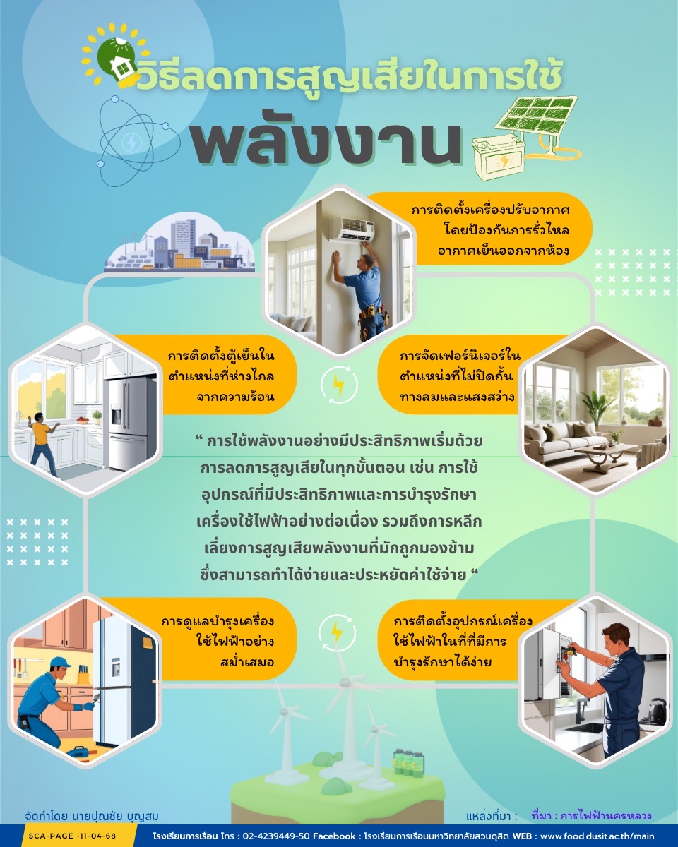 ประชาสัมพันธ์ข้อมูลความรู้โรงเรียนการเรือน ประจำวันที่ 23 พฤศจิกายน 2568 หัวข้อ “4ป..ประหยัดพลังงาน ช่วยโลกประหยัดค่าไฟ เรายิ่งประหยัด” ในภาวะวิกฤตพลังงาน “การประหยัดพลังงาน” คือ กุญแจสำคัญที่ทุกคนสามารถช่วยกันทำได้ทันทีจากพฤติกรรมใกล้ตัว ไม่ว่าจะปิดไฟ ปรับแอร์ ปลดปลั๊ก หรือเปลี่ยนมาใช้เครื่องใช้ไฟฟ้าประหยัดพลังงาน ทุกอย่างล้วนช่วยลดค่าใช้จ่ายและลดภาระด้านพลังงานของประเทศ เมื่อเราลงมือทำเพียงเล็กน้อยก็สามารถช่วยลดการใช้น้ำมันและก๊าซนำเข้า พร้อมทั้งร่วมรักษ์โลก ลดโลกร้อนไปพร้อมกันได้…