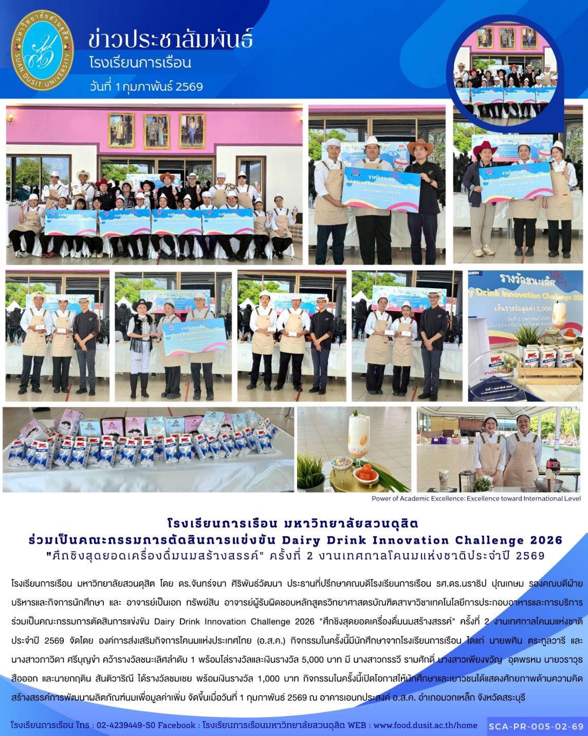 วันที่ 6 – 14 ธันวาคม 2568 ศูนย์ฝึกปฏิบัติการอาหารนานาชาติ โรงเรียนการเรือน มหาวิทยาลัยสวนดุสิต เดินทางไปสหราชอาณาจักร เพื่อสร้างความเข้มแข็งและขยายเครือข่ายความร่วมมือด้านการอาหารของโรงเรียนการเรือนในระดับนานาชาติ ร่วมกับ World City Links ภายใต้โครงการส่งเสริมความสัมพันธ์และขยายความร่วมมือ 2/2569 (ขยายความร่วมมือด้านการศึกษา ณ สหราชอาณาจักร)…
