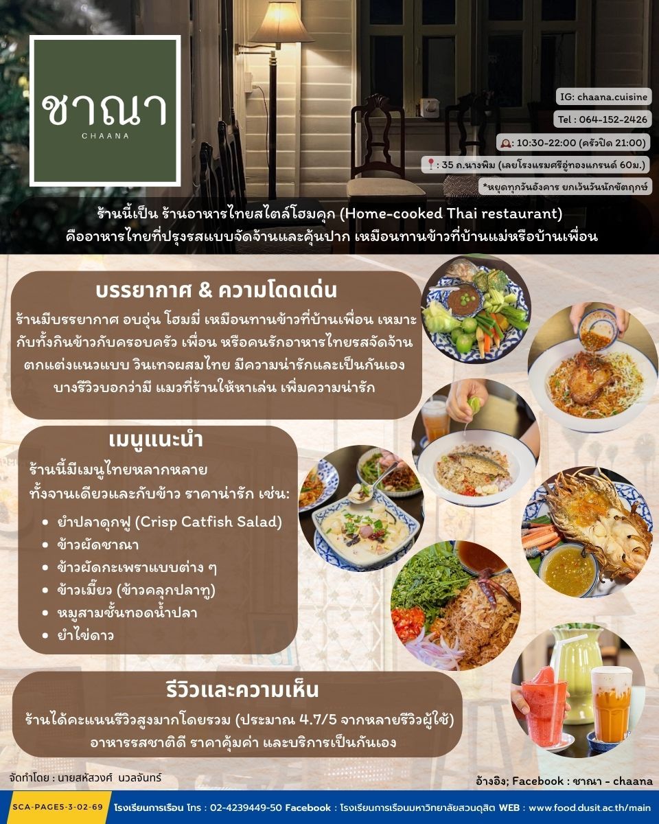ประชาสัมพันธ์ข้อมูลความรู้โรงเรียนการเรือน ประจำวันที่ 18 ธันวาคม 2568 หัวข้อ “ร้านอาหารไทยใน Sydney Australia” แนะนำร้านอาหารไทยในซิดนีย์ ออสเตรเลีย1. Thai Pothong ที่อยู่ 294 King St, Newtown, NSW 2042ร้านดังเก่าแก่ เสิร์ฟอาหารไทยต้นตำรับ พร้อมบรรยากาศอบอุ่นแบบไทยแท้2. Spice…