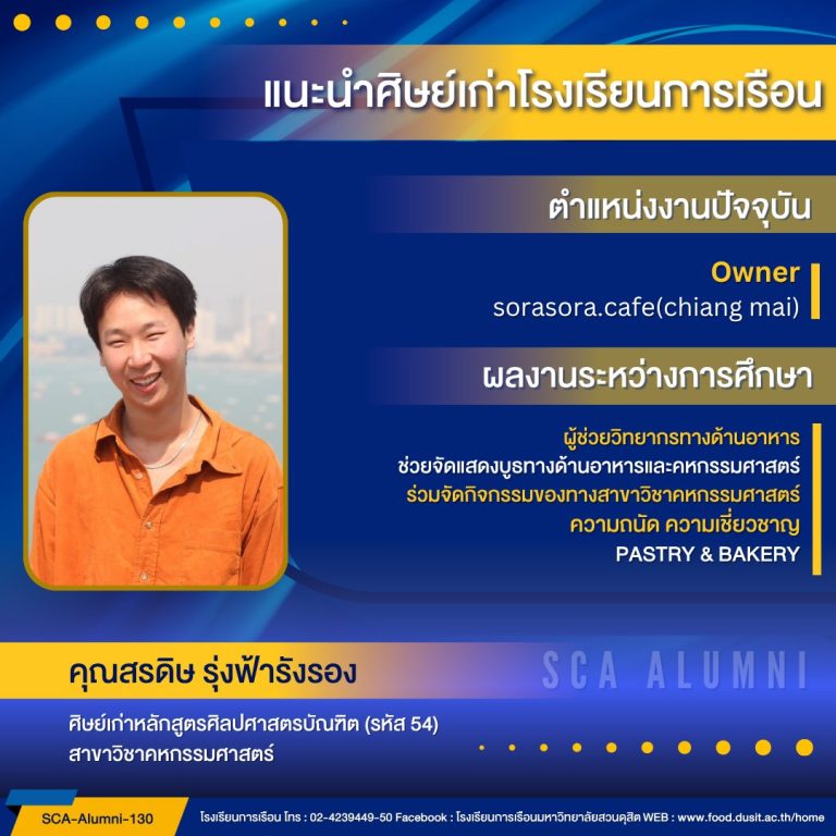 โรงเรียนการเรือน มหาวิทยาลัยสวนดุสิต ร่วมกับ ธนาคารไทยพาณิชย์ จำกัด (มหาชน) ในการจัดอบรมหลักสูตรพัฒนาทักษะ สร้างงาน สร้างอาชีพ โดยอบรมในหัวข้อ “อาหารและเบเกอรีเพื่อสุขภาพ” ซึ่งได้รับเกียรติจาก รองศาสตราจารย์ ดร.ฐิตา ฟูเผ่า ประธานหลักสูตรวิทยาศาสตรบัณฑิต สาขาวิชาโภชนาการและการประกอบอาหารเพื่อสุขภาพและการชะลอวัย เป็นวิทยากรอบรมถ่ายทอดความรู้ในการประกอบอาหาร ความรู้เกี่ยวกับโภชนาการเพื่อการชะลอวัย เมนูบราวนี่แป้งข้าวสิบเหล็ก เมนูคัพเค้กข้าวโอ๊ตกล้วยหอม และเซ็ตเมนูอาหารต้านการชะลอวัย การอบรมในครั้งนี้มีวัตถุประสงค์เพื่อพัฒนาทักษะวิชาชีพในด้านการประกอบอาหารและงานคหกรรมศาสตร์ การเลือกใช้วัตถุดิบ รวมถึงด้านเทคนิคขั้นตอนการ เตรียมวัตถุดิบ และเคล็ดลับต่าง ๆ เพื่อสร้างทักษะวิชาชีพด้านการประกอบอาหารและงานคหกรรมศาสตร์ สำหรับบุคลากรของธนาคาร ไทยพาณิชย์ จำกัด (มหาชน) ซึ่งจัดขึ้นเมื่อวันที่ 27 พฤศจิกายน 2568 เวลา 09.30-10.30 น. รูปแบบ Online ผ่านระบบ Microsoft Teams