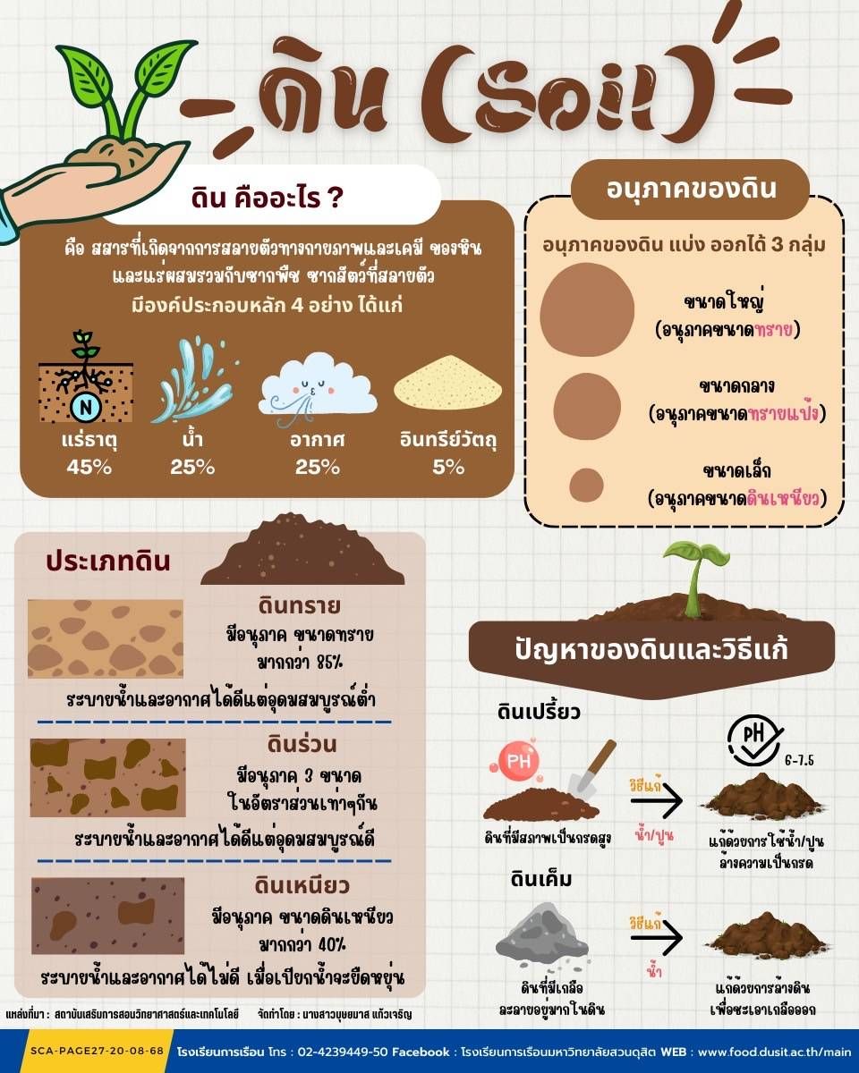 ดินเป็นองค์ประกอบสำคัญของผืนแผ่นดินที่เราใช้ในการดำรงชีวิต ไม่ว่าจะเป็นการเพาะปลูกพืช หรือเป็นฐานรากของอาคารที่อยู่อาศัย ในทางวิทยาศาสตร์ “ดิน” หมายถึง เทหวัตถุทางธรรมชาติที่เกิดจากการสลายตัวของหินและแร่ธาตุ ผสมผสานกับอินทรียวัตถุจนกลายเป็นชั้นบาง ๆ ที่ปกคลุมผิวโลก ดินทำหน้าที่หล่อเลี้ยงและค้ำจุนการเจริญเติบโตของพืช อีกทั้งยังมีการแบ่งชั้นและลักษณะเฉพาะที่แตกต่างกัน ทำให้สามารถจำแนกดินออกได้หลากหลายชนิด