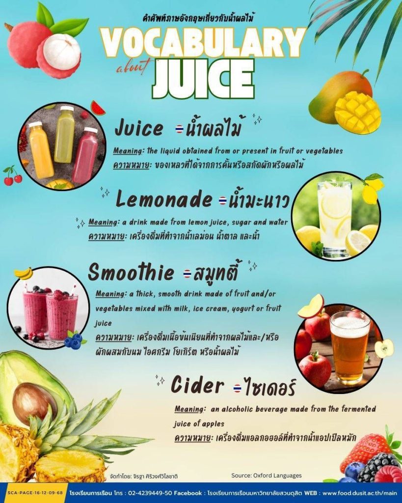 Vocabulary about Juice คำศัพท์ภาษาอังกฤษเกี่ยวกับน้ำผลไม้