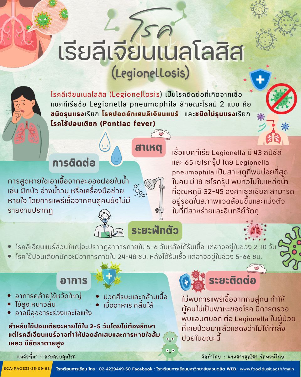 เป็นโรคติดต่อที่เกิดจากเชื้อแบคทีเรียชื่อ Legionella pneumophila