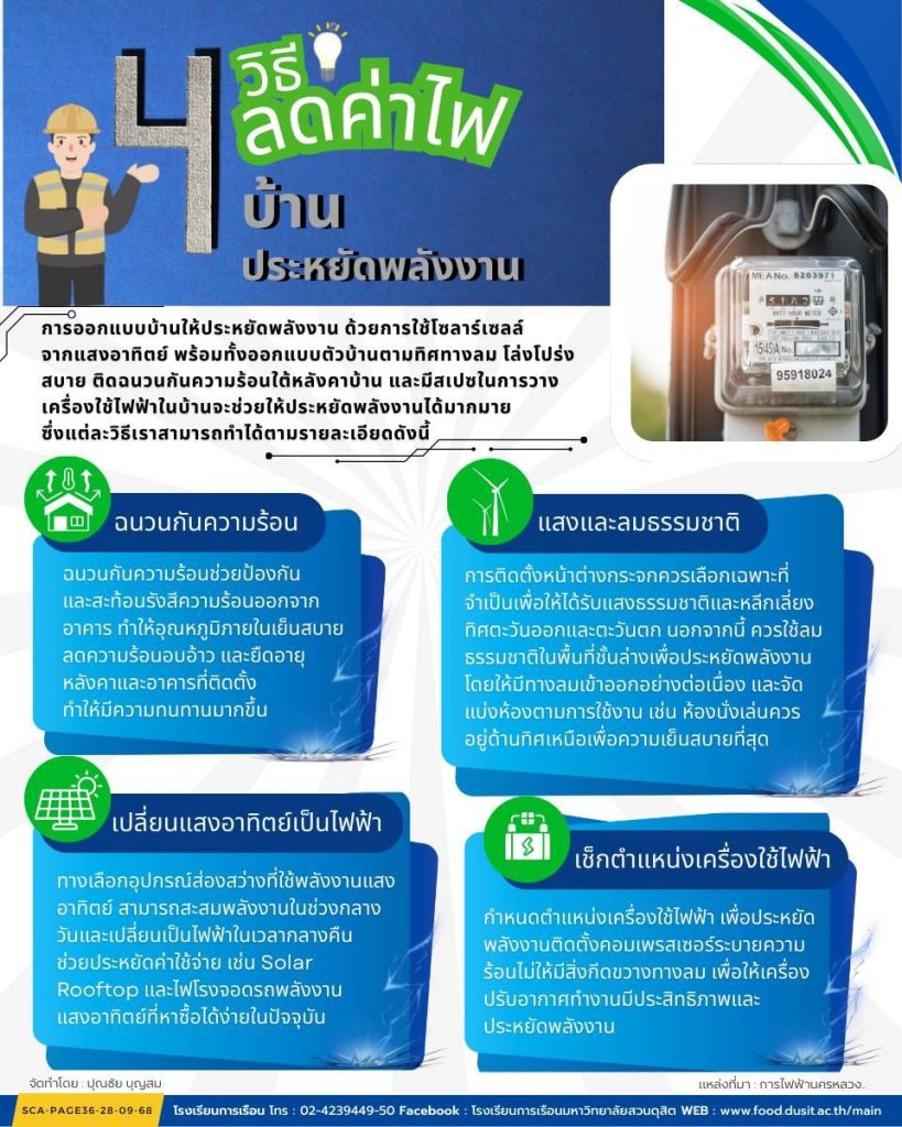ค่าไฟที่เพิ่มขึ้นทุกเดือน เป็นปัจจัยหลักสำหรับหลายๆคนที่ทำให้ค่าใช้จ่ายเพิ่มมากขึ้น หากใครอยากจะเอาเงินไปซื้ออะไรก็ต้องแบ่งมาจ่ายค่าไฟไว้ก่อนอยู่เสมอ หลายๆ คนจึงมองหาไอเดียลดค่าไฟเอาไว้บ้าง เมื่อเข้าสู่ฤดูร้อนอันแสนร้อนระอุของประเทศไทย การใช้พลังงานไฟฟ้าก็เพิ่มขึ้นเป็นหลายเท่าตัว เรามี 4 วิธี อยู่บ้านอย่างไรให้ประหยัดไฟและเงินในกระเป๋ามาฝาก