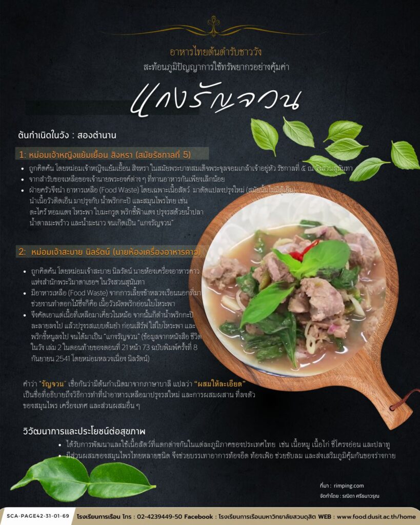 หัวข้อ “แกงรัญจวน”อาหารไทยต้นตำรับชาววัง อาหารที่สะท้อนภูมิปัญญาการใช้ทรัพยากรอย่างคุ้มค่า