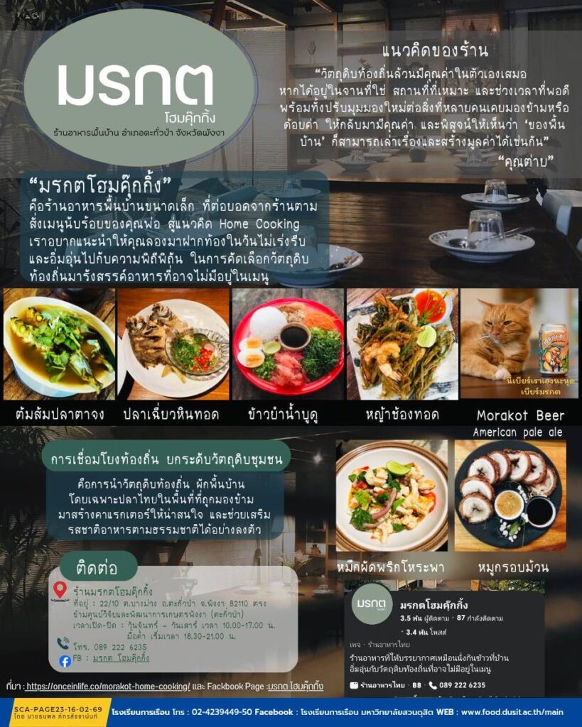 หากคุณกำลังมองหาร้านเล็ก ๆ ที่ใส่ใจในทุกรายละเอียด จากวัตถุดิบท้องถิ่นสู่จานอาหารที่เปี่ยมความหมาย ชวนคุณมาทำความรู้จักเรื่องราวและแนวคิดของร้าน “มรกตโฮมคุ๊กกิ้ง” ผ่านสื่อประชาสัมพันธ์ฉบับนี้ แล้วคุณอาจหลงรักเสน่ห์ของวัตถุดิบและอาหารพื้นบ้าน