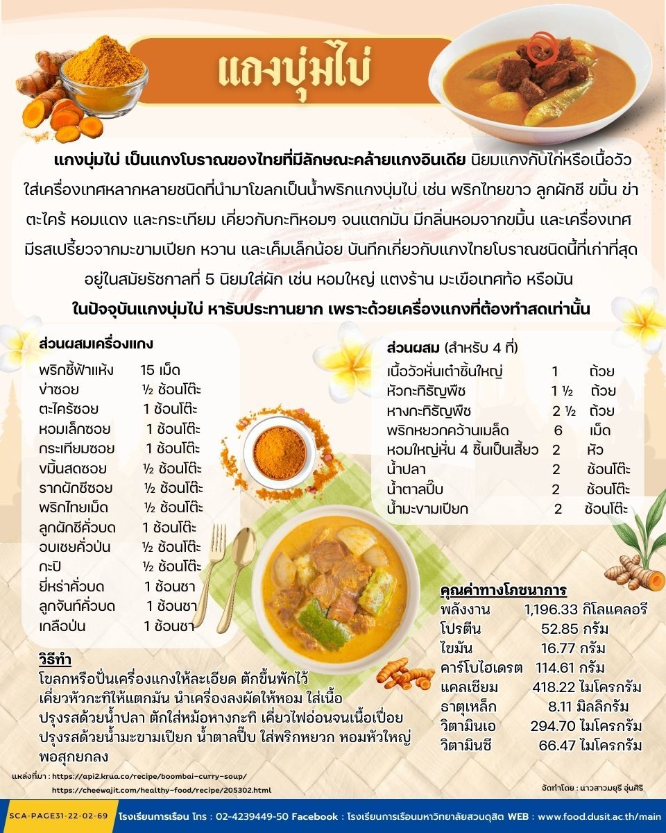 “แกงบุ่มไบ่” เป็นแกงโบราณของไทยที่มีลักษณะคล้ายแกงอินเดียมาก นิยมแกงกับไก่หรือเนื้อวัว ใส่เครื่องเทศหลายชนิดเคี่ยวกะทิจนแตกมัน มีรสเปรี้ยวจากมะขามเปียก บันทึกเกี่ยวกับแกงชนิดนี้ที่เก่าที่สุดอยู่ในสมัยรัชกาลที่ 5 แกงบุ่มไบ่นิยมใส่ผัก คือ หอมใหญ่และแตงร้าน ส่วนผสมพริกแกงประกอบด้วย พริกไทย ลูกผักชี ยี่หร่า ดอกจันทน์ (หรือรกหุ้มเมล็ดของผลจันทน์เทศ) ลูกจันทน์ (หรือเมล็ดจันทน์เทศ) พริกแห้ง เกลือ ข่าแก่ ขมิ้น กระเทียม หอมแดง และกะปิ