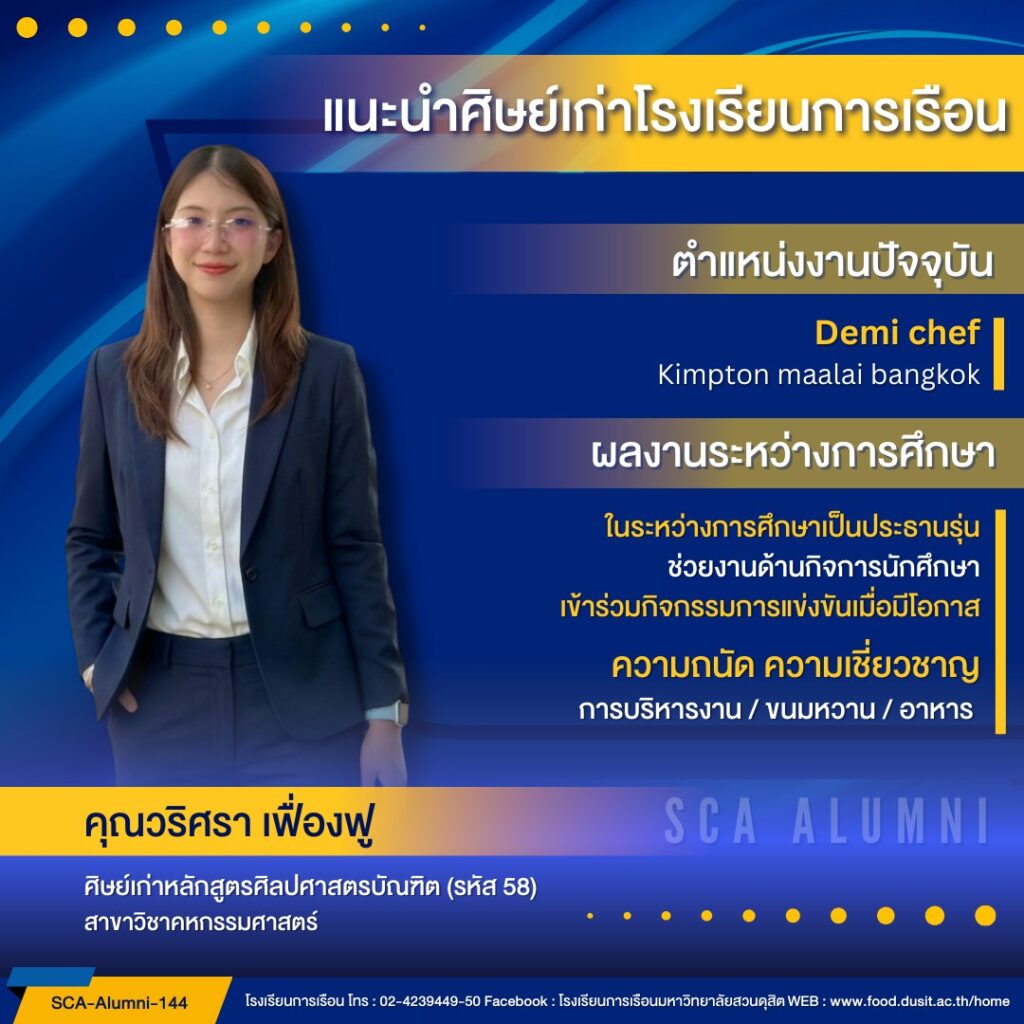 ขอแนะนำศิษย์เก่าของโรงเรียนการเรือน รหัส 58 คุณวริศรา เฟื่องฟู