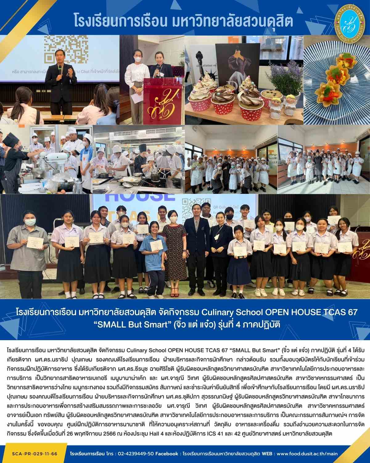 โรงเรียนการเรือน มหาวิทยาลัยสวนดุสิต จัดกิจกรรม Culinary School OPEN HOUSE TCAS 67 “SMALL But Smart” (จิ๋ว แต่ แจ๋ว) รุ่นที่ 4 ภาคปฏิบัติ