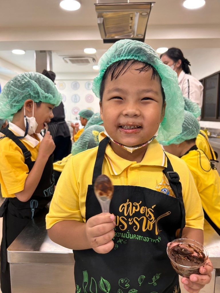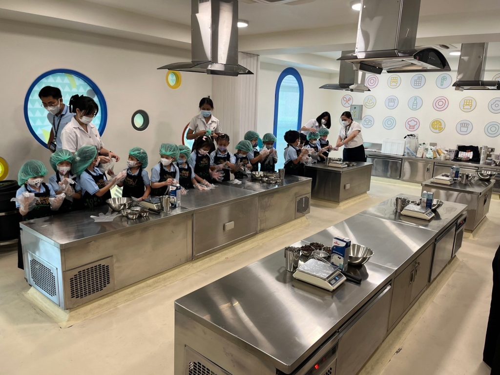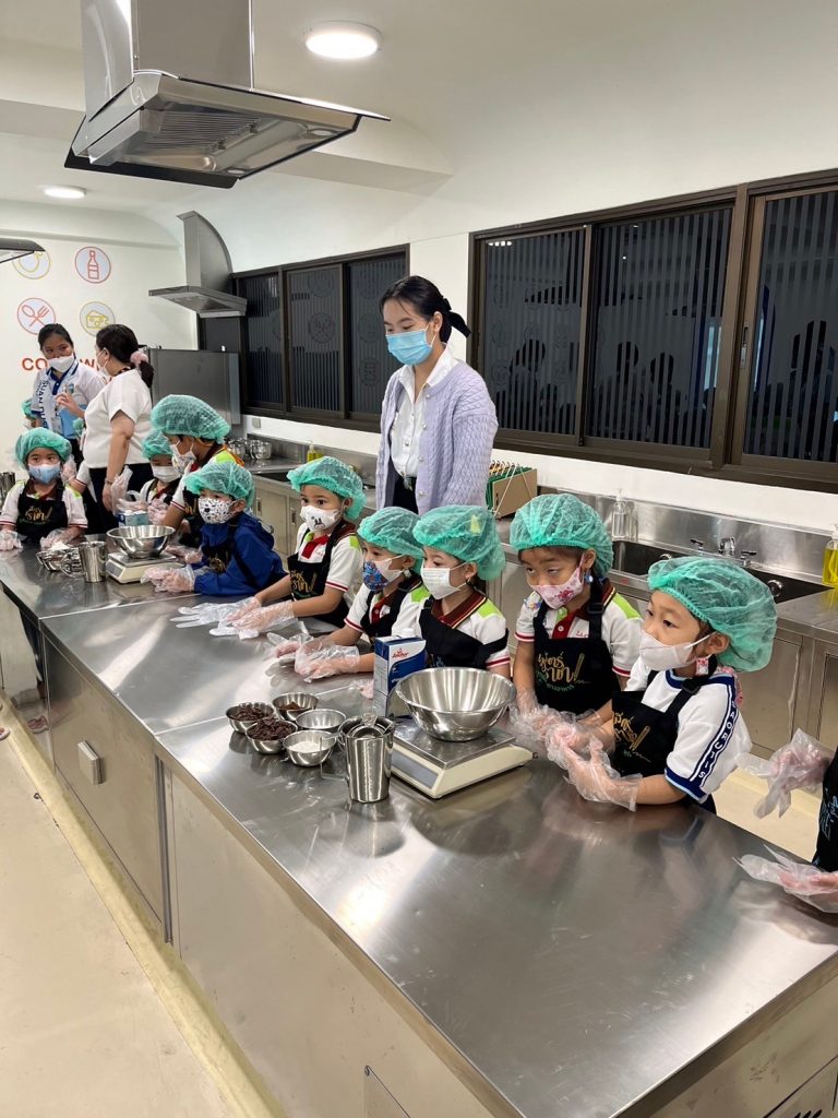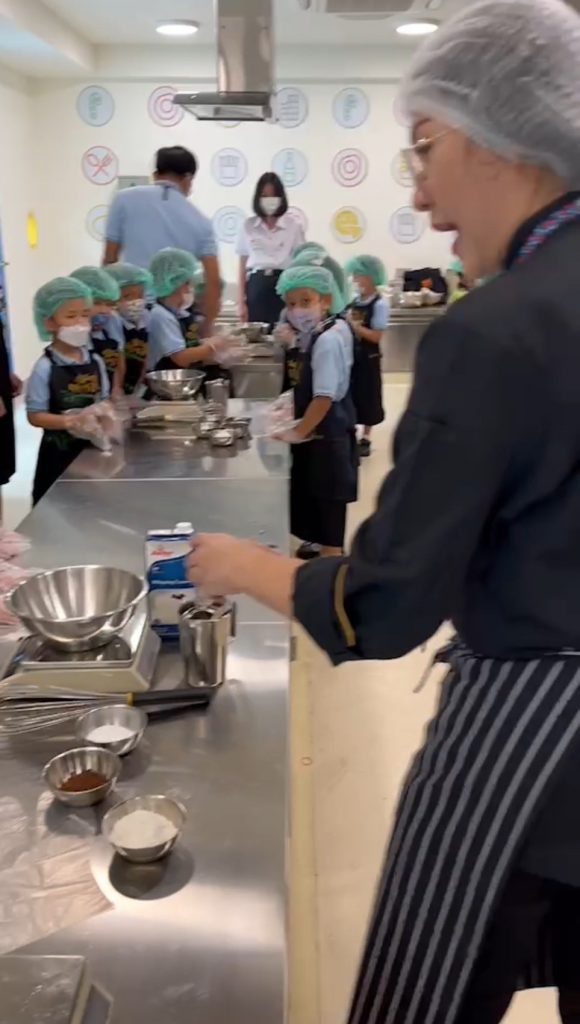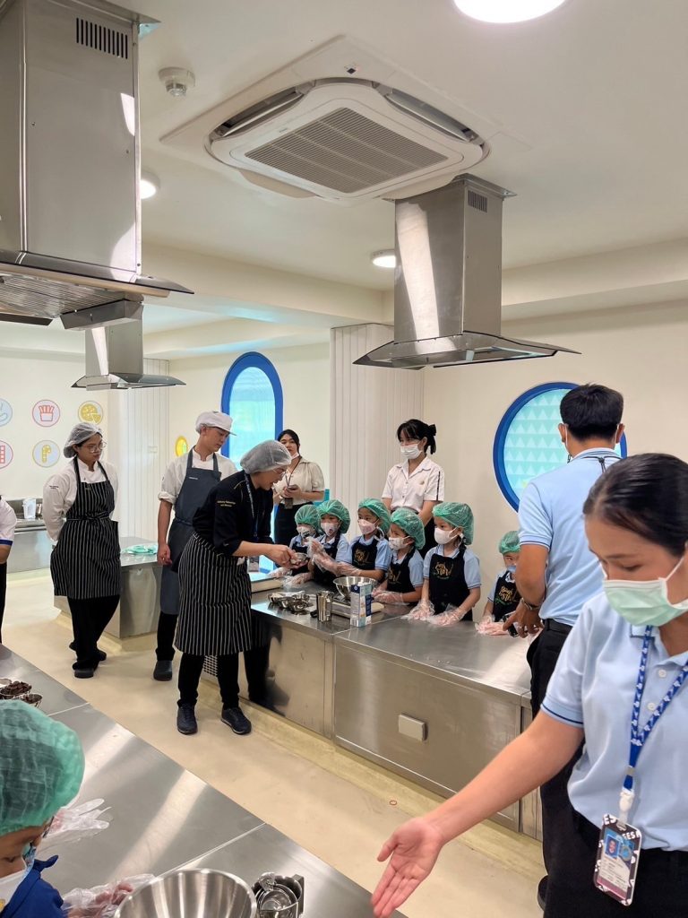 โรงเรียนการเรือน ร่วมกับ โรงเรียนสาธิตละอออุทิศ กรุงเทพมหานคร จัดกิจกรรม “หน่วยหลายชนิดที่เราวัด” ภายใต้โครงการจากชุมชนสู่โรงเรียน ครั้งที่ 1 ปีการศึกษา 2567 โดยมีวัตถุประสงค์เพื่อให้นักเรียนโรงเรียนสาธิตละอออุทิศ ระดับชั้นอนุบาลปีที่ 3 ได้เรียนรู้การทำเมนูอาหารหรือขนมผ่านการใช้เครื่องมือในการชั่ง ตวง วัด ในเมนูช็อกโกแลตมูสเค้ก โดยรับเกียรติจาก ผู้ช่วยศาสตราจารย์ ดร.โสรัจจ์ วิสุทธิแพทย์ ผู้รับผิดชอบหลักสูตรวิทยาศาสตรบัณฑิต สาขาวิชาเทคโนโลยีการประกอบอาหารและการบริการ อาจารย์ธัญลักษณ์ อุ่นสุข อาจารย์ประจำหลักสูตรวิทยาศาสตรบัณฑิต สาขาวิชาโภชนาการและการประกอบอาหารเพื่อการสร้างเสริมสมรรถภาพและการชะลอวัย และนักศึกษาหลักสูตรวิทยาศาสตรบัณฑิต สาขาวิชาเทคโนโลยีการประกอบอาหารและการบริการ เป็นวิทยากรในการจัดกิจกรรม กิจกรรมในครั้งนี้มีนักเรียนจำนวน 138 คน ซึ่งจัดขึ้นเมื่อวันที่ 25 – 26 กรกฎาคม 2567 เวลา 09.00 – 11.00 น. ณ ห้องปฏิบัติการอาหาร Room 1 อาคาร 8 ชั้น 2