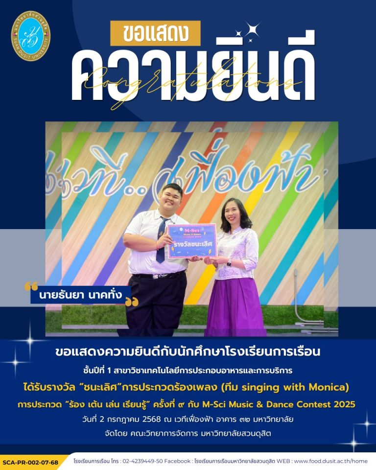 ขอแสดงความยินดีกับนักศึกษาโรงเรียนการเรือน