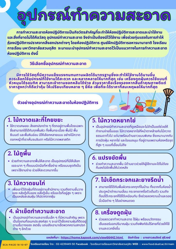 อุปกรณ์การทำความสะอาดในยุคปัจจุปัน มีอุปกรณ์ที่ใช้เป็นตัวช่วยในการทำ ความสะอาด ที่ใช้สำหรับ ขัด เช็ด ถู ล้างคราบสกปรก คราบเลอะเปรอะเปื้อน คราบไขมันต่าง ๆ ตั้งแต่การทำความสะอาดทั่วไปในครัวเรือน ไปจนถึงการทำความสะอาดในระดับอุตสาหกรรม ดังนั้น เพื่อเป็นการเพิ่มประสิทธิภาพการทำความสะอาด การ เลือกใช้อุปกรณ์ให้เหมาะสมต่อการใช้งานในแต่ละพื้นที่ เราจะพามาทำความรู้จักอุปกรณ์ทำความสะอาดว่า มีกี่ประเภท และแต่ละประเภทมีคุณสมบัติในการใช้งานอย่างไร