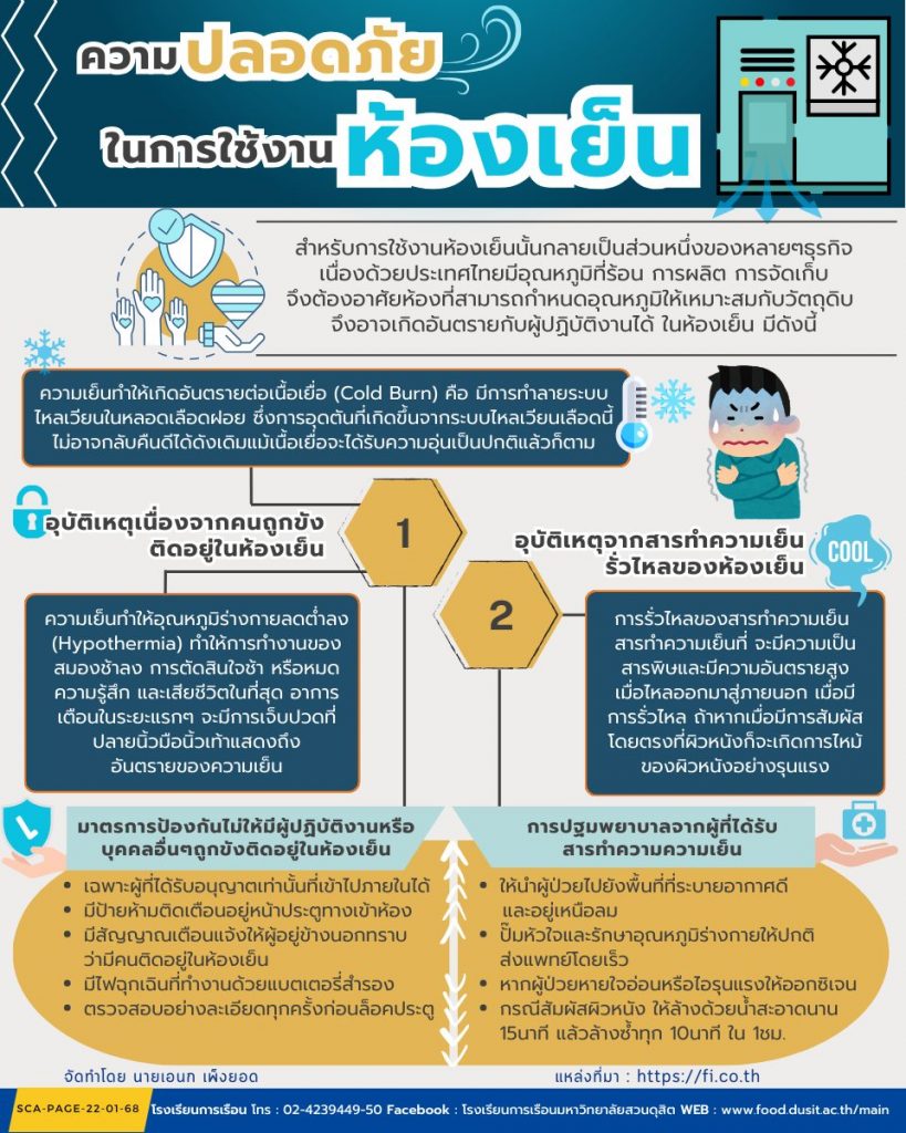 1.อุบัติเหตุเนื่องจากคนถูกขังติดอยู่ในห้องเย็นและมาตรการป้องกันไม่ให้มีผู้ปฏิบัติงานหรือบุคคลอื่นๆถูกขังติดอยู่ในห้องเย็น