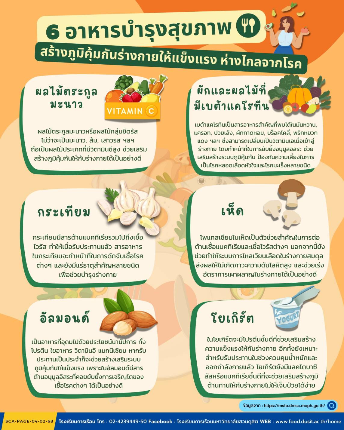 6 อาหารบำรุงสุขภาพ..สร้างภูมิคุ้มกันร่างกายให้แข็งแรง ห่างไกลจากโรค