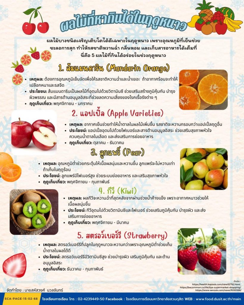 ผลไม้บางชนิดเจริญเติบโตได้ดีเฉพาะในฤดูหนาว เพราะอุณหภูมิที่เย็นช่วยชะลอการสุก ทำให้รสชาติหวานฉ่ำ กลิ่นหอม และเก็บสารอาหารได้เต็มที่