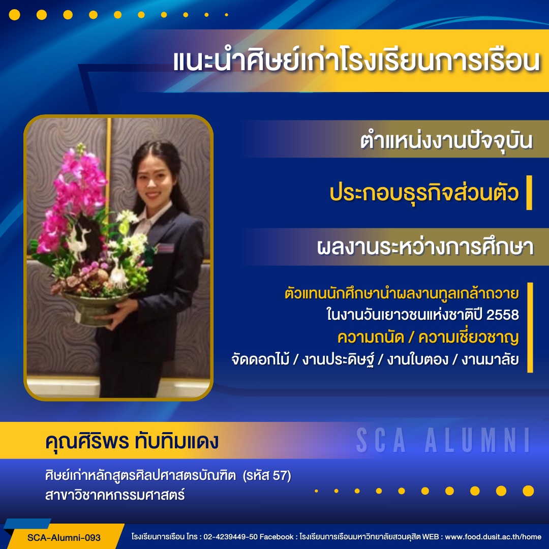 แนะนำศิษย์เก่าของโรงเรียนการเรือน รหัส 57 คุณศิริพร ทับทิมแดง