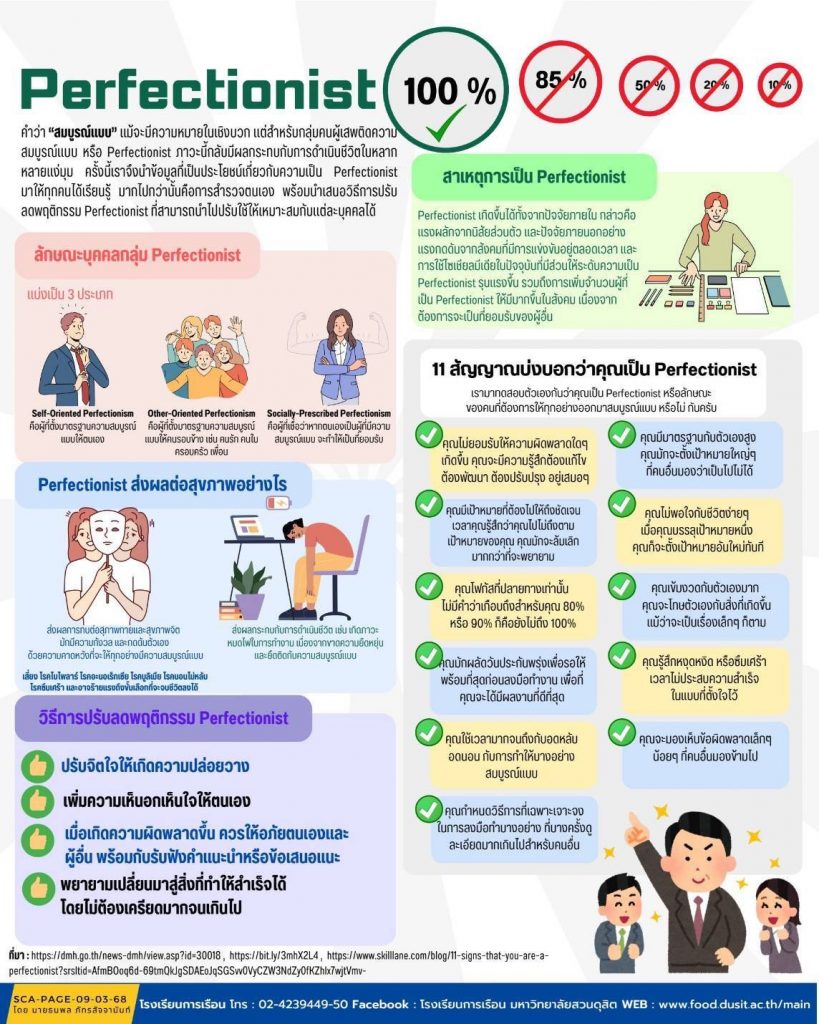 ตั้งคำถามกับตัวเองว่าการแสวงหาความสมบูรณ์แบบนั้นเป็นแรงบันดาลใจหรือเป็นภาระที่ซ่อนเร้นอยู่หรือไม่? พบกับสื่อประชาสัมพันธ์ “Perfectionist” ที่จะพาคุณไปรู้จักกับความหมายและลักษณะต่าง ๆ ของคนที่แสวงหาความสมบูรณ์แบบ พร้อมทั้งชี้ให้เห็นผลกระทบต่อสุขภาพทั้งทางร่างกายและจิตใจ พร้อมเสนอวิธีการปรับลดพฤติกรรมที่สามารถทำได้จริงและเช็คลิสต์ง่าย ๆ เพื่อให้คุณรู้ว่าคุณเป็น Perfectionist หรือไม่ ร่วมเปิดมุมมองใหม่ในการดูแลตัวเองและปรับสมดุลในชีวิตไปกับเรา!
