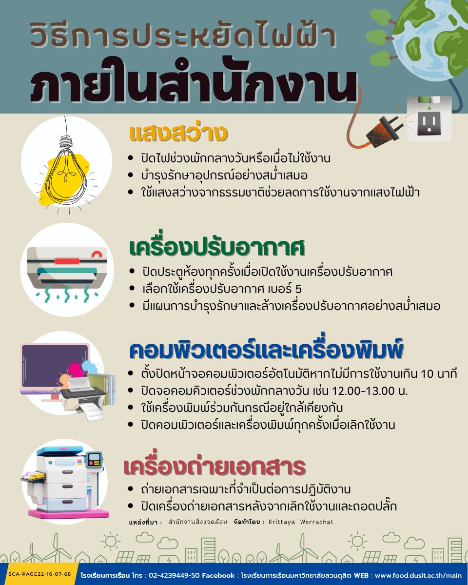 1. การใช้ไฟฟ้าและแสงสว่าง ปิดไฟเมื่อไม่ใช้งาน และบำรุงรักษาอย่างต่อเนื่อง
