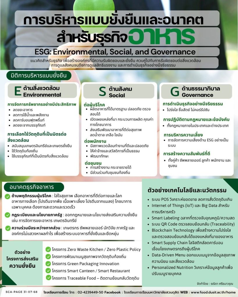 “การบริหารแบบยั่งยืนและอนาคตสำหรับธุรกิจอาหารด้วยแนวคิด ESG”