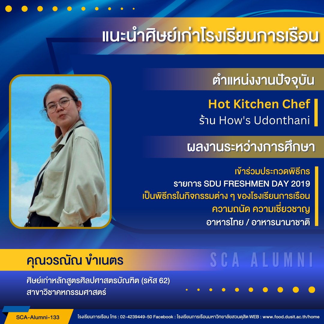 แนะนำศิษย์เก่าของโรงเรียนการเรือน รหัส 62 คุณวรณัณ ขำเนตร